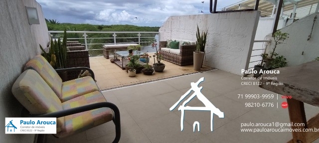 Apartamento à venda em Buraquinho, 150 m², duplex, nascente, com 3 suítes, escritório, 2 varandas (uma gourmet e outra com vista para o rio Joanes), sala em dois ambientes, banheiro social, cozinha americana, área de serviço e 2 vagas descobertas e soltas. Condomínio com piscina, píer com acesso ao Joanes, lugar para guardar pranchas, bicicletário, gás encanado e individualizado.