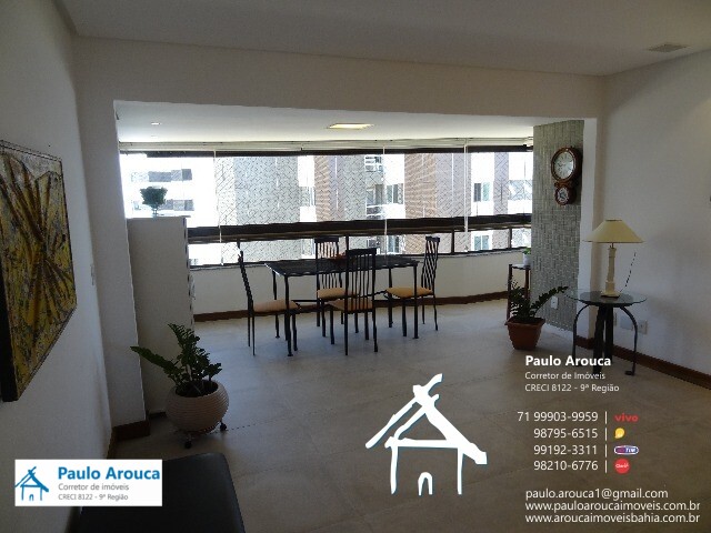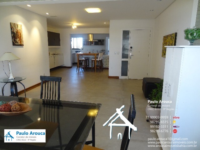 Apartamento à venda em Patamares, com linda vista permanente para o mar, nascente, 155 m², reformado, andar alto, ventilado, com armários nos quartos, cozinha, dependências de empregada e área de serviço, ampla varanda integrada à sala, 4 quartos (3 suítes, uma com closet e duas com varanda), living em dois ambientes, 3 vagas de garagem cobertas com depósito, porcelanato nas salas e quartos, bancada em "L" e mesa de refeição na cozinha, aquecedor a gás para os chuveiros.